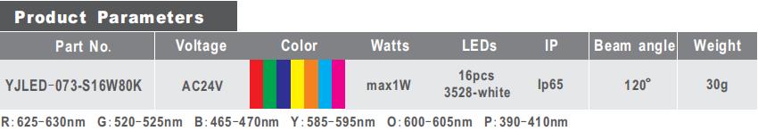 | 发光颜色: | 软白,,,正白,,,冷白,,,红,,,绿,,,蓝,,,黄 | |