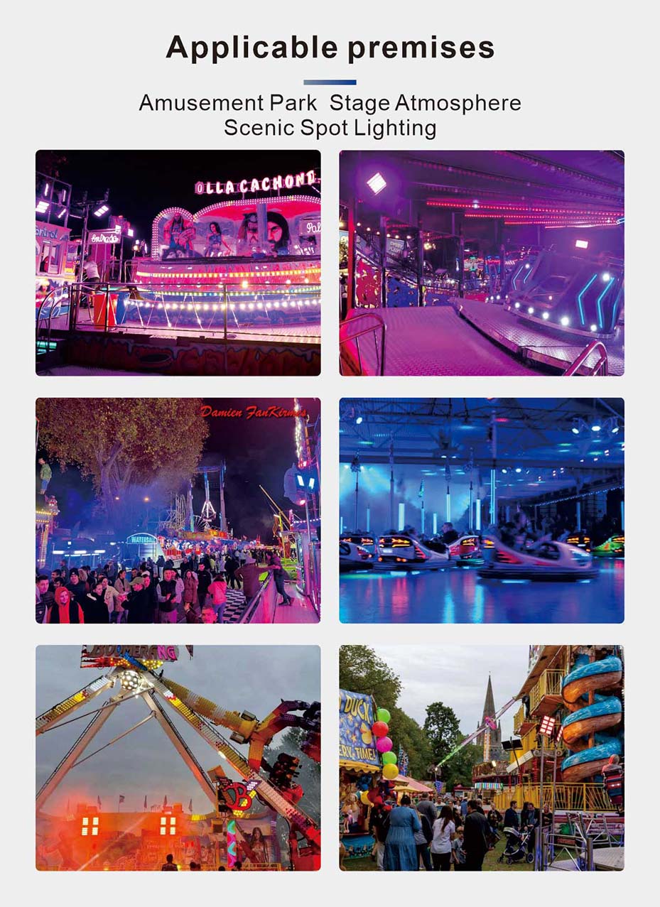 5.IP65防水。。。。。。IP65防雨防尘,,,,,,顺应多种天气,,,,,,可知足多种照明需求:游乐照明、舞台气氛、景点照明、修建照明