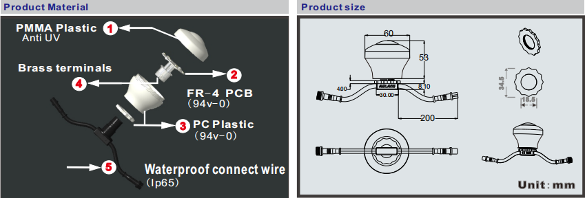 4.透明PC外壳,, ,,具有优异的防水性能、抗紫外线性能和PCB板、毗连器电缆。。。。。。。