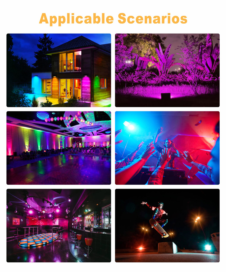 5.防水品级IP66:具有IP66防护品级,,,很是适合室内外使用。。。。。。包括生日派对、夜间烧烤、花园照明、派对、公共场合、游乐场舞台照明等。。。。。。