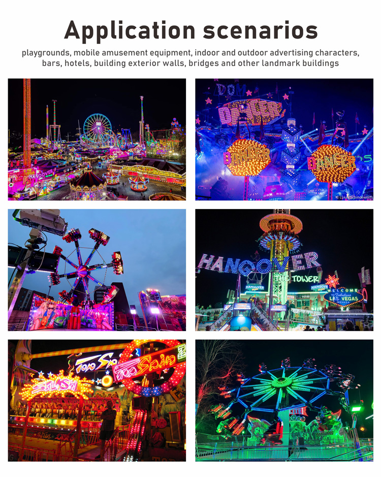自动防水设计:该灯接纳IP65防水设计,,,,,,适合户外使用,,,,,,很是适合摩天轮、游乐场 LED 灯和其他户外装饰。。。