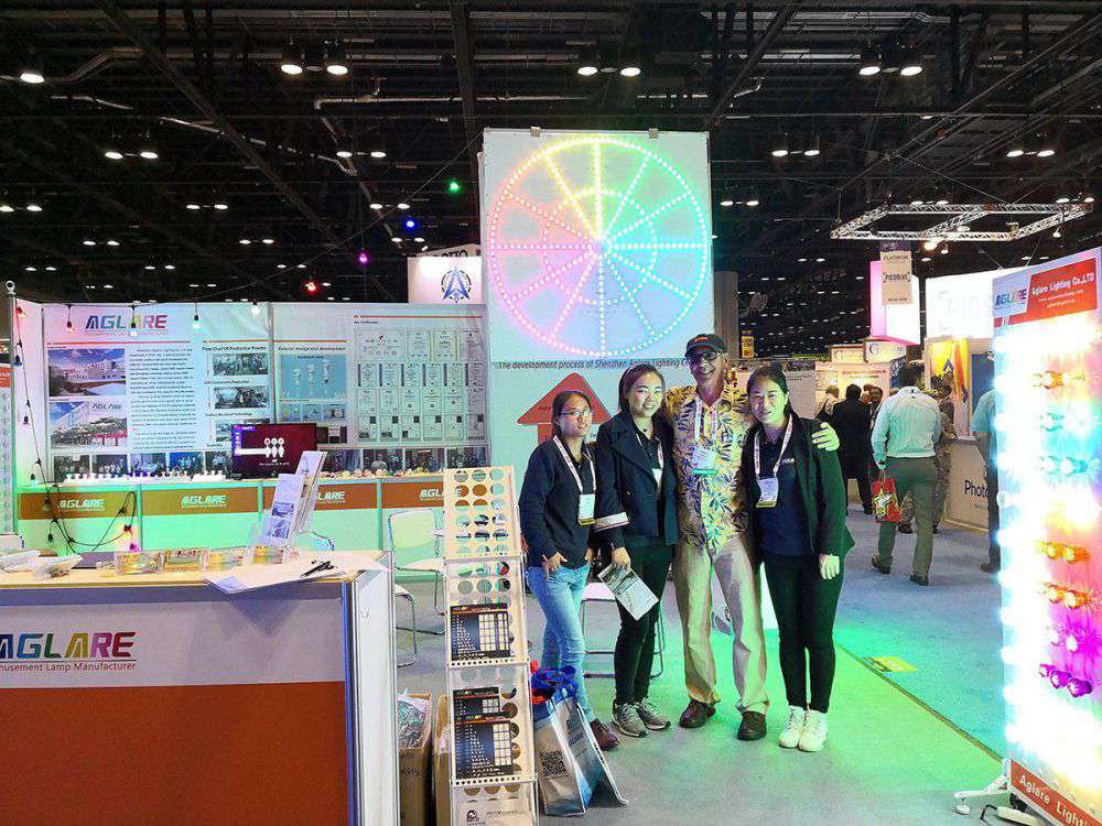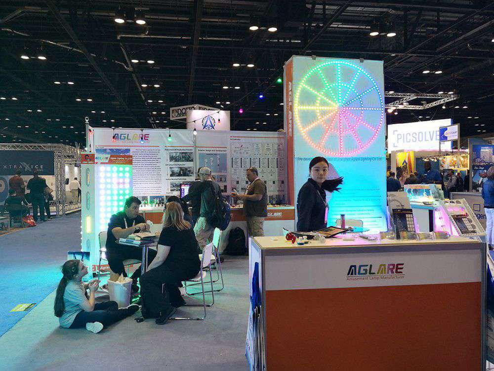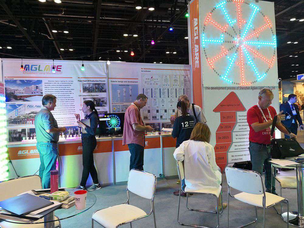 由于美国奥兰多IAAPA展会收效优异,,,,,2017年我司加大了展会的投入,,,,,把以前的18平改为36平方米,,,,,重新安排了展架,,,,,越发真实的反应了bm11222宝马娱乐网站照明 AGLARE 这个LED 灯具品牌的实力,,,,,我们在展会上展示了我司新款的RGB LED Flood Lights,,,,,这个产品在设计上接纳新的思绪,,,,,解决了外洋客人浅易装置,,,,,简朴使用的问题,,,,,取得了大宗的定单。。。。。