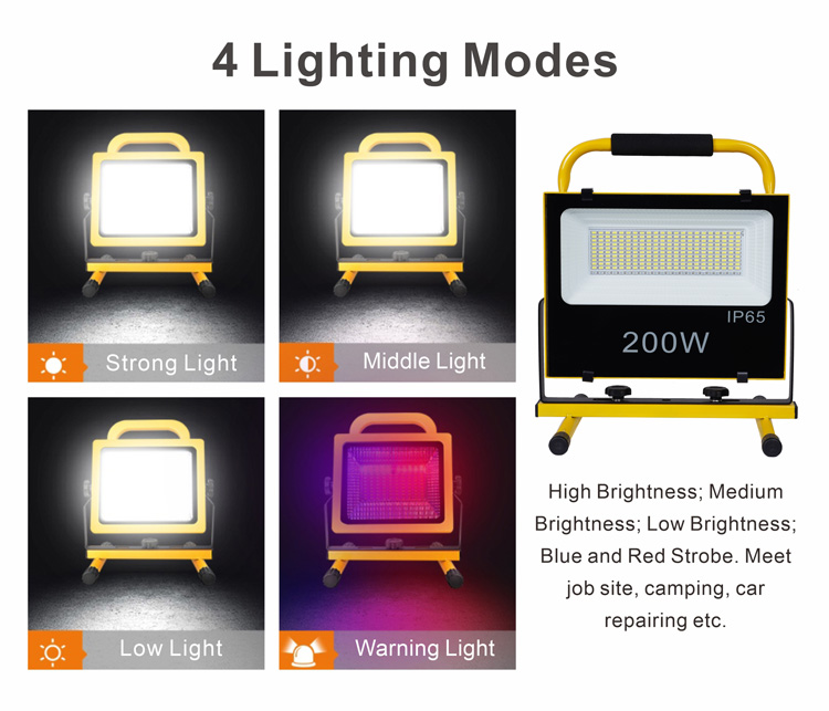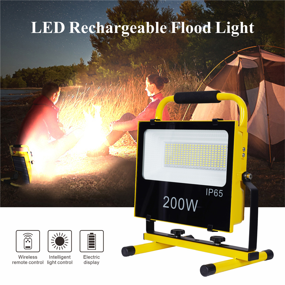 便携式手提充电灯LED投光灯200W带支架,,,,,适用于户外露营车库车间修建工地垂纶作业现场照明