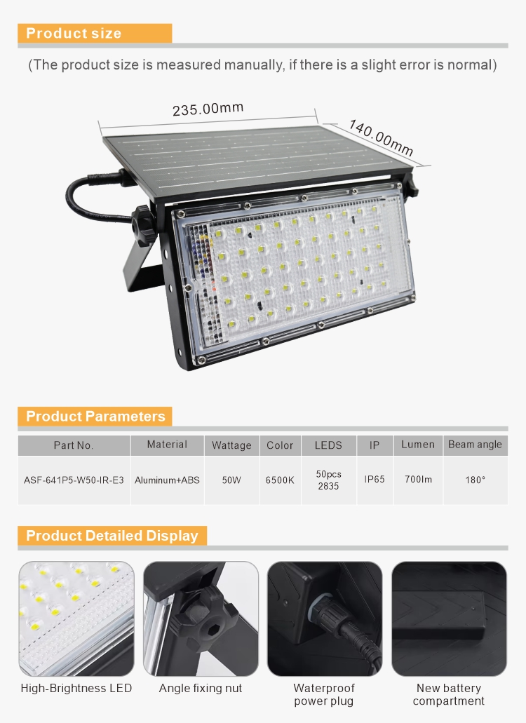 这种便携式一体化太阳能投光灯适用于客栈、花园、户外、衡宇,,,,,,作为夜间清静的附加照明 。。。。无论是用于清静目的照旧照亮您的户外空间,,,,,,它都能确保最佳照明条件 。。。。
